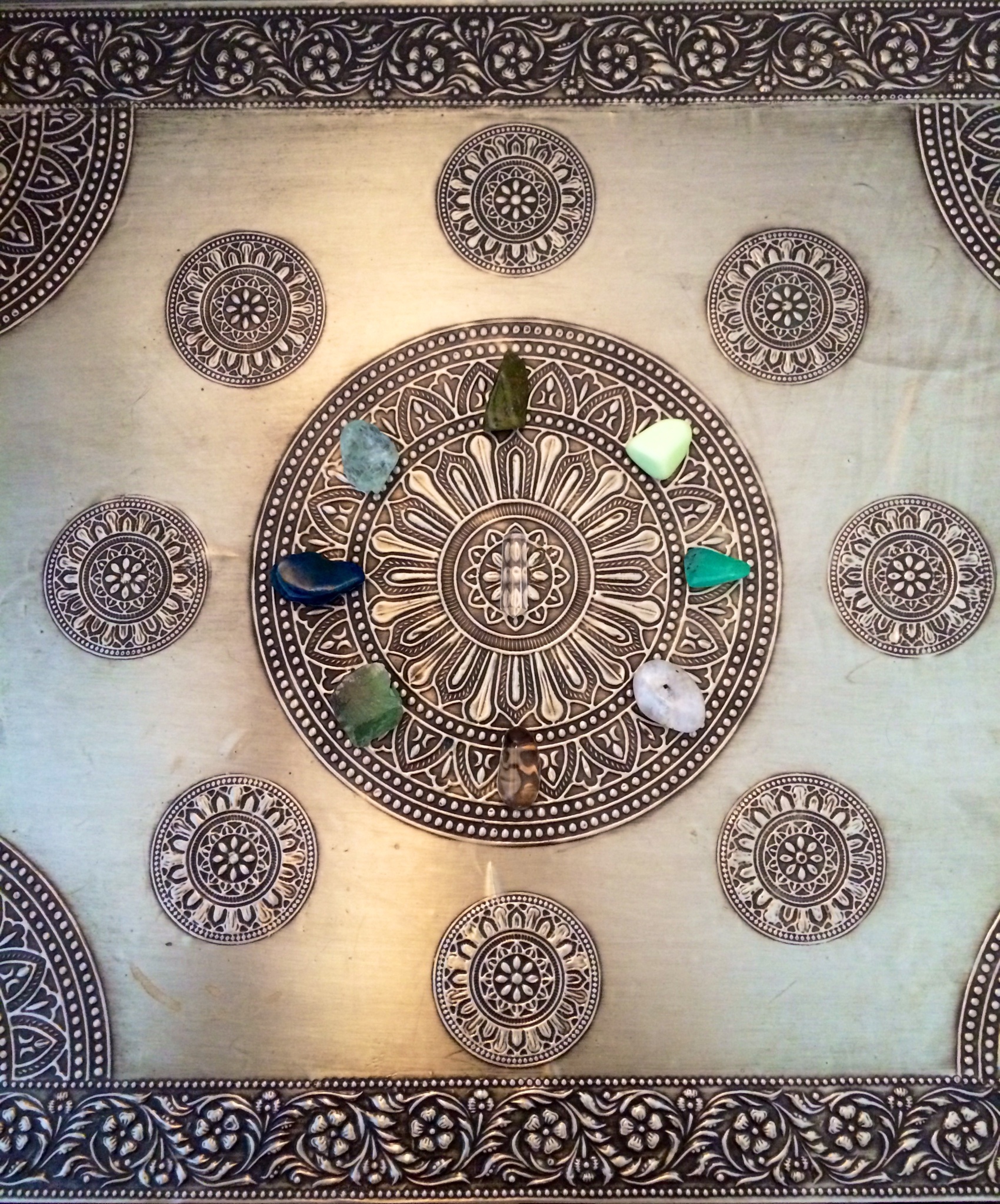 Right Lower: Moonstone – New beginnings, stone of high priestess, enhances intuitive powers, harmony in relationships, balances female hormones, evokes patience and appropriate action, protection for travelers