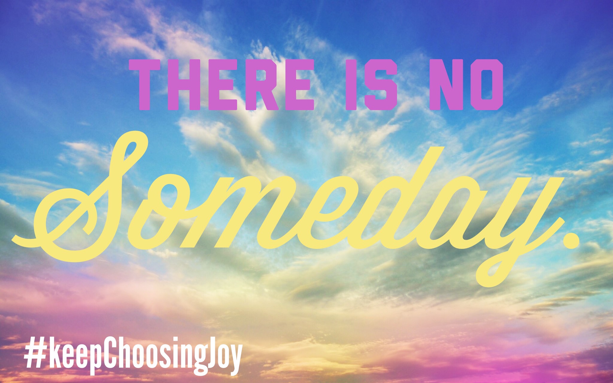 There is no one day, no someday. If you want to do something, get it done! Start now, right now.
